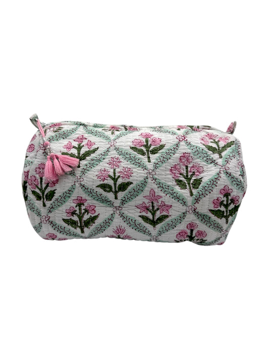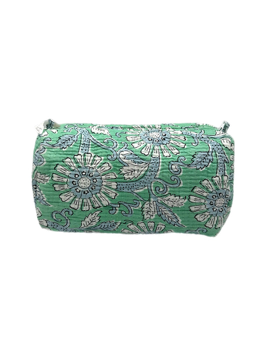 'Green Floral' Block Printed Sponge Bag/Washbag