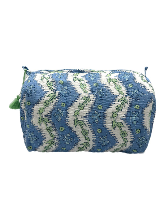 'Blue Leaf' Block Printed Sponge Bag/Washbag