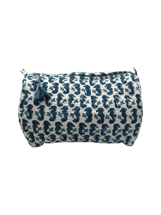 'Blue Seahorse' Block Printed Sponge Bag/Washbag