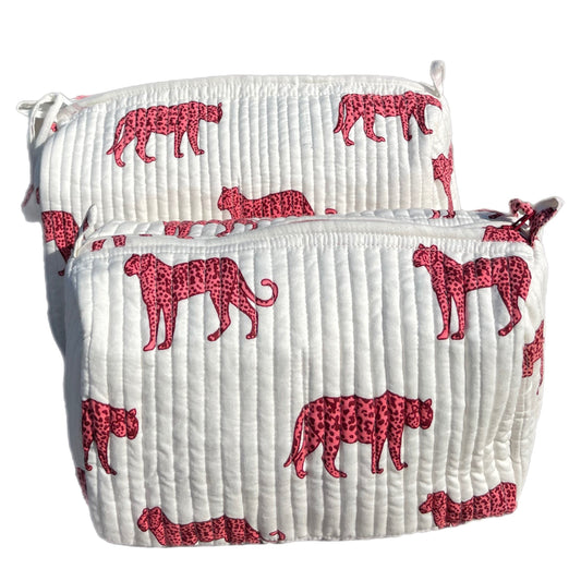 'Pink Leopard' Block Printed Sponge Bag/Washbag