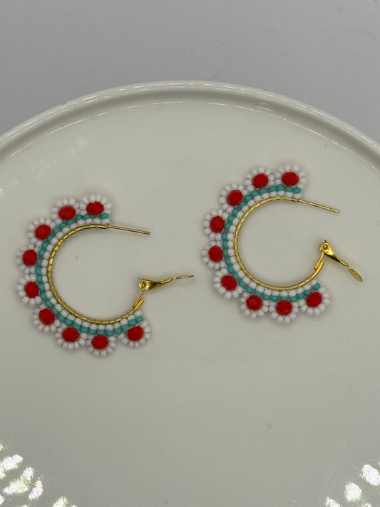 Flower Beaded Hoop Earrings