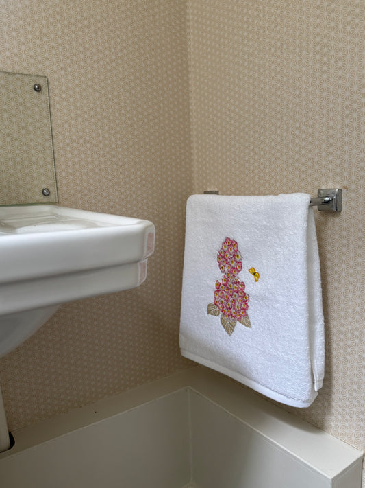 Pink Hydrangea and Butterfly Embroidered Hand Towel