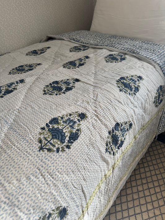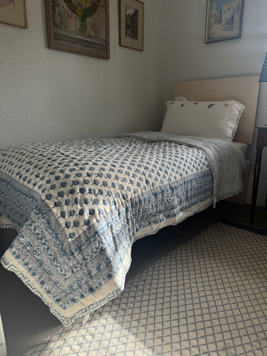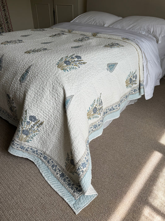 Blue Cypress Hand Block-Printed Bedspread
