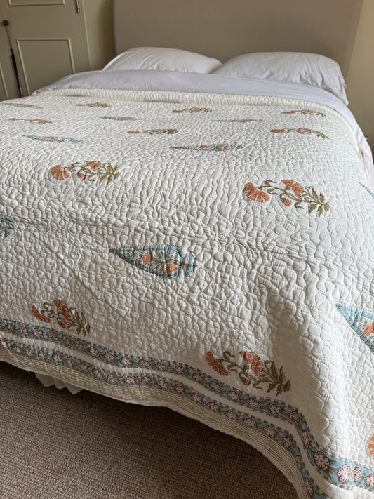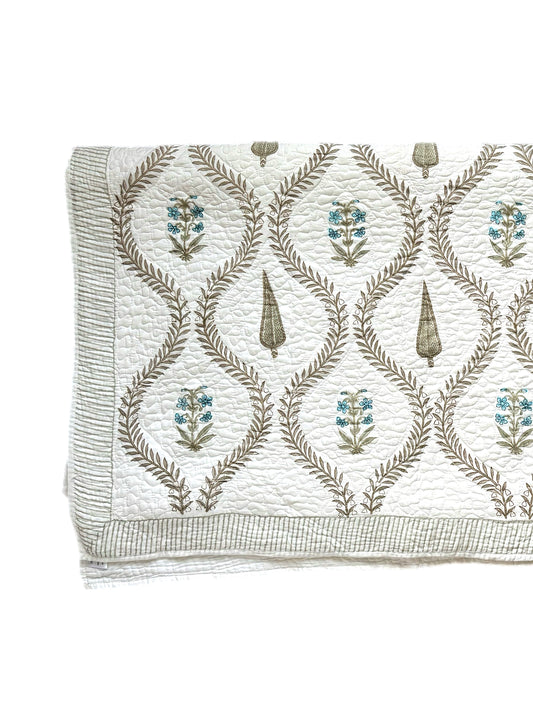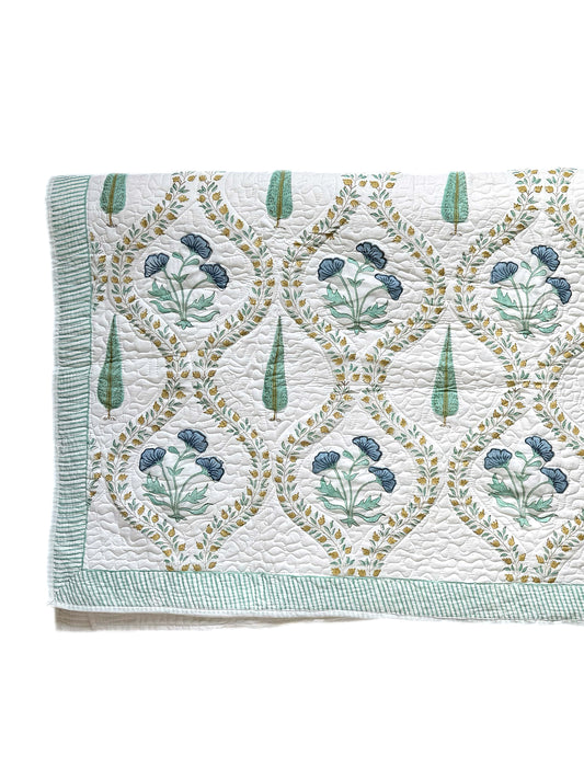 Turquoise Cypress Hand Block-Printed Bedspread