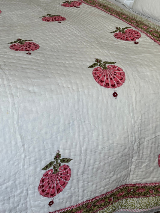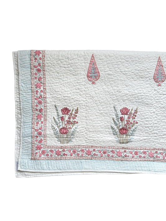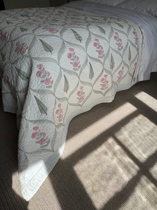 Cypress & Pink Foliage Hand Block-Printed Bedspread