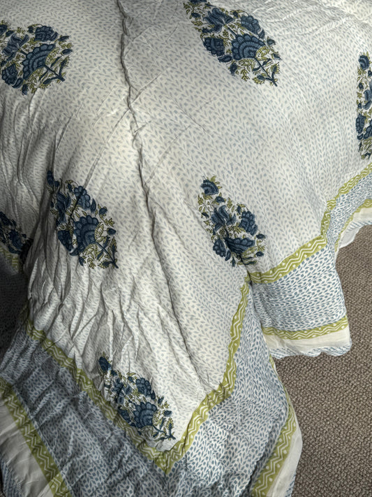 Blue Foliage and Cypress Hand Block-Printed Bedspread
