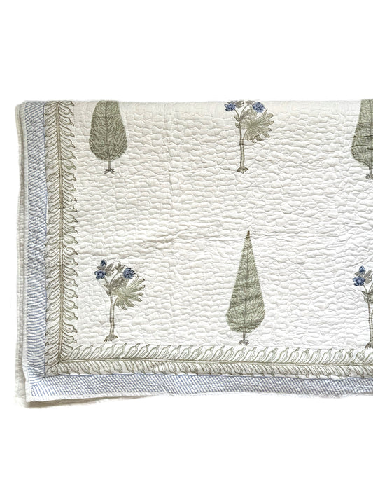 Blue Cypress and Foliage Hand Block-Printed Bedspread