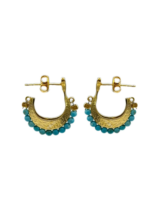 Gemstone Cresent Hoop Earrings - Turquoise