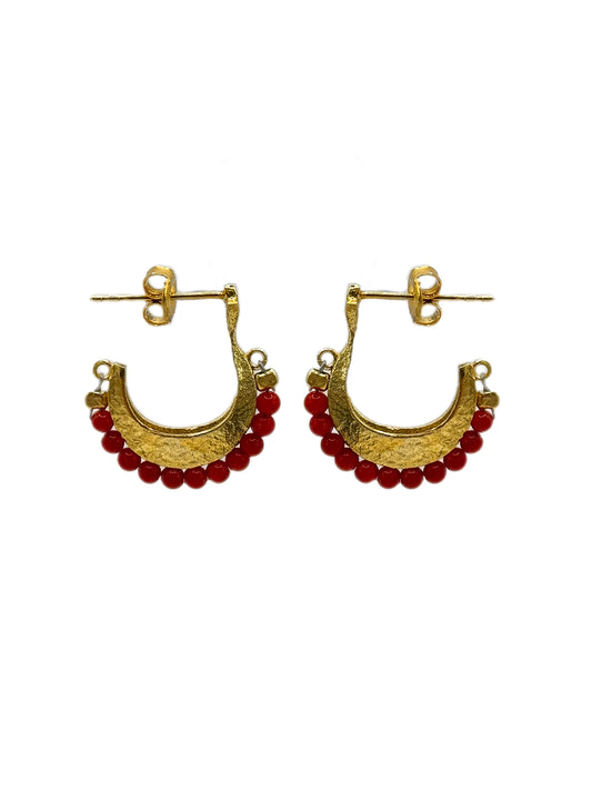 Gemstone Cresent Hoop Earrings - Red
