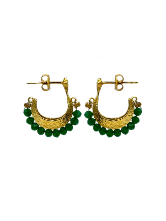 Gemstone Cresent Hoop Earrings - Green
