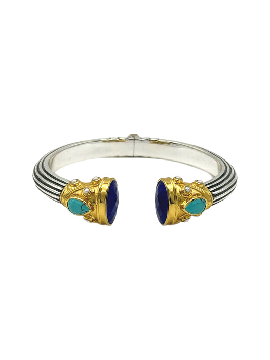 Silver & Gold Plated Lapis Lazuli, Pearl and Turquoise Jewelled Bangle