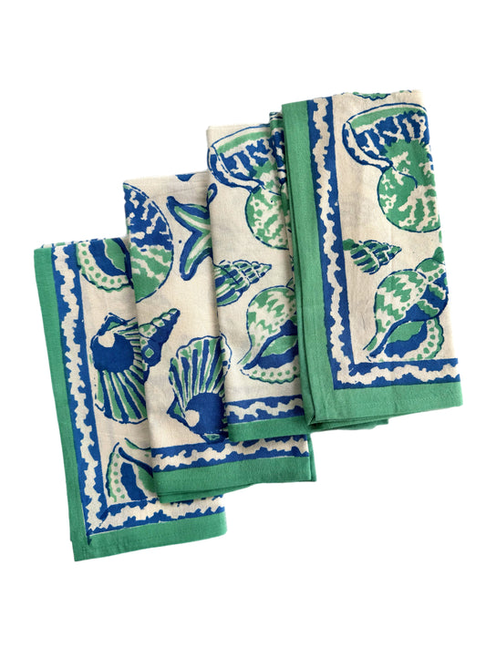 Green & Blue Shell/Starfish Napkins - Set of 4