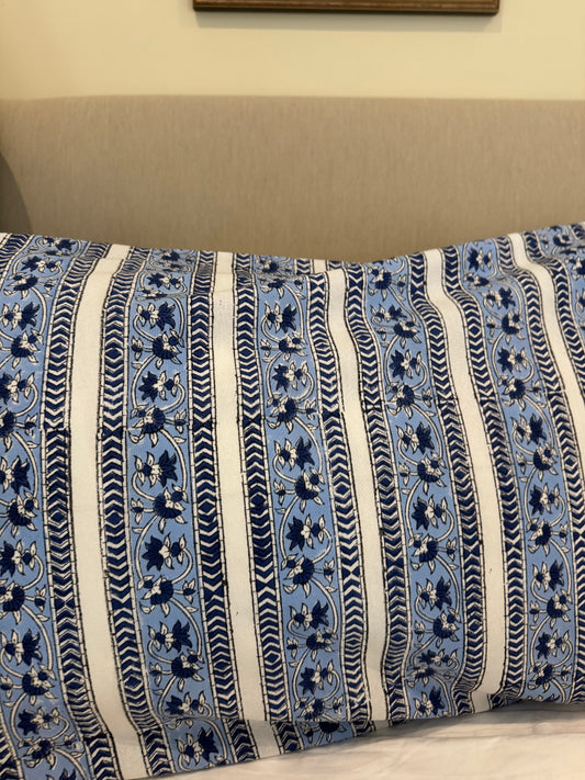 Blue Foliage Hand Block Printed Pillowcase Pair