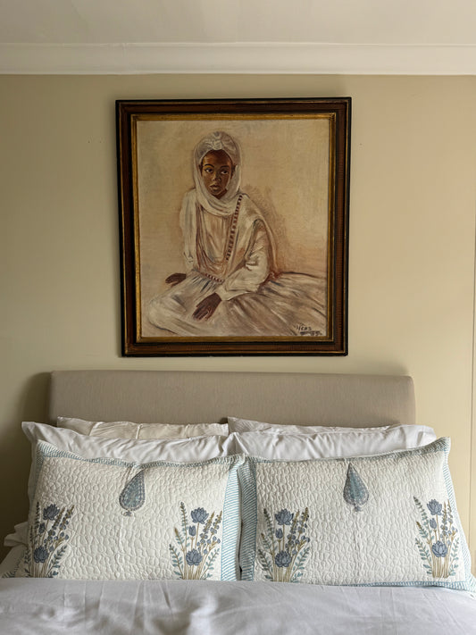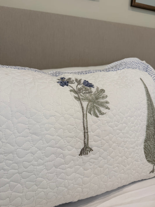 Blue Cypress & Shrubs Quilted Hand Block Printed Pillowcase Pair
