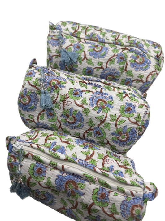 'Blue Leaf' Block Printed Sponge Bag/Washbag