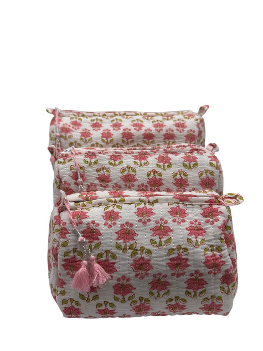'Pink Pineapple' Block Printed Sponge Bag/Washbag