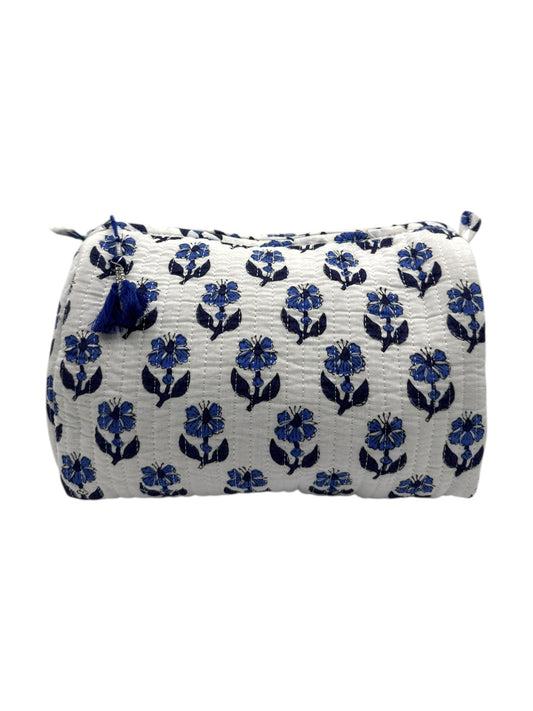 'Blue Filigree' Block Printed Sponge Bag/Washbag