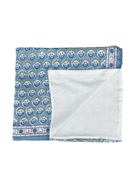 'Blue Moroccan Leaves' Block Printed Cotton Towel
