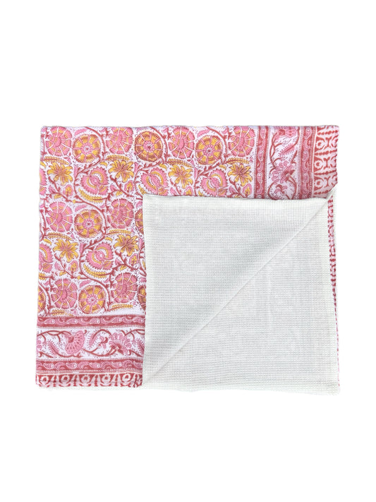 'Orange & Pink Fauna' Block Printed Cotton Towel