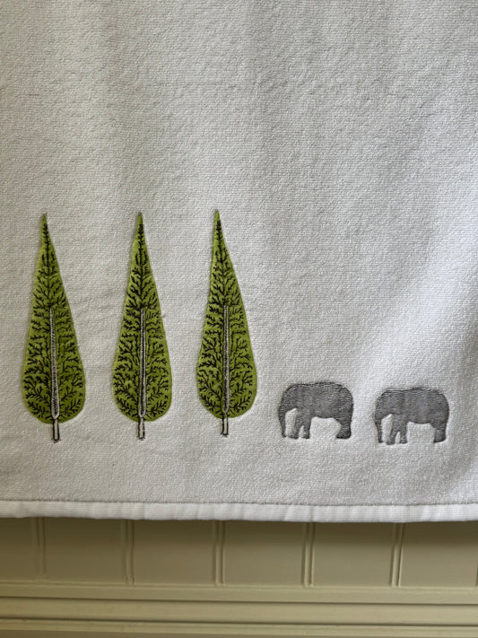Cypress Tree and Elephant Embroidered Bath Towel