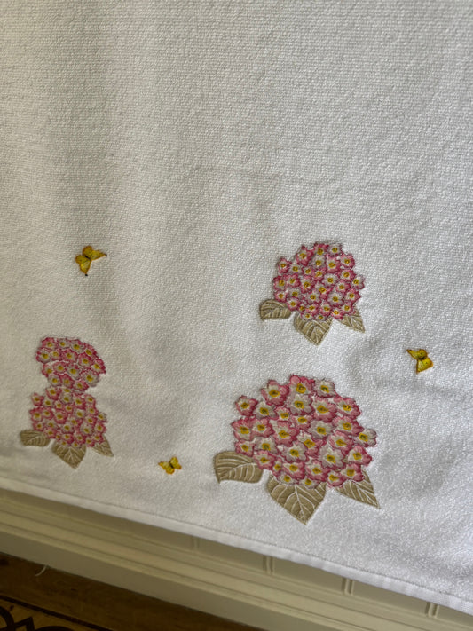 Pink Hydrangea and Butterfly Embroidered Bath Towel
