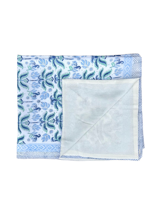 'Blue Shrub' Block Printed Cotton Towel
