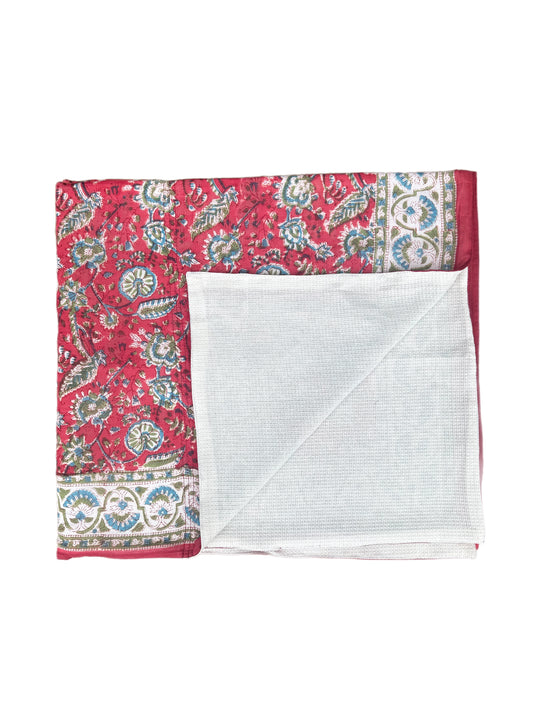 'Red & Blue Fauna' Block Printed Cotton Towel