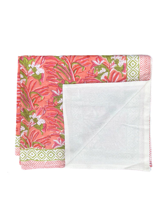 'Orange & Pink Fauna' Block Printed Cotton Towel