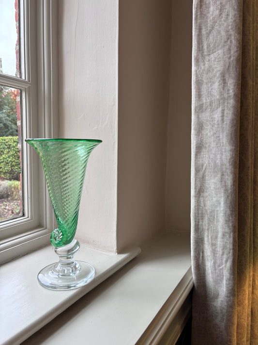 Large Green Fluted Glass Shell Vase