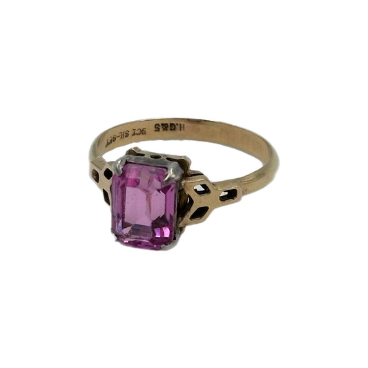 9ct Gold Emerald Cut Pink Stone Ring
