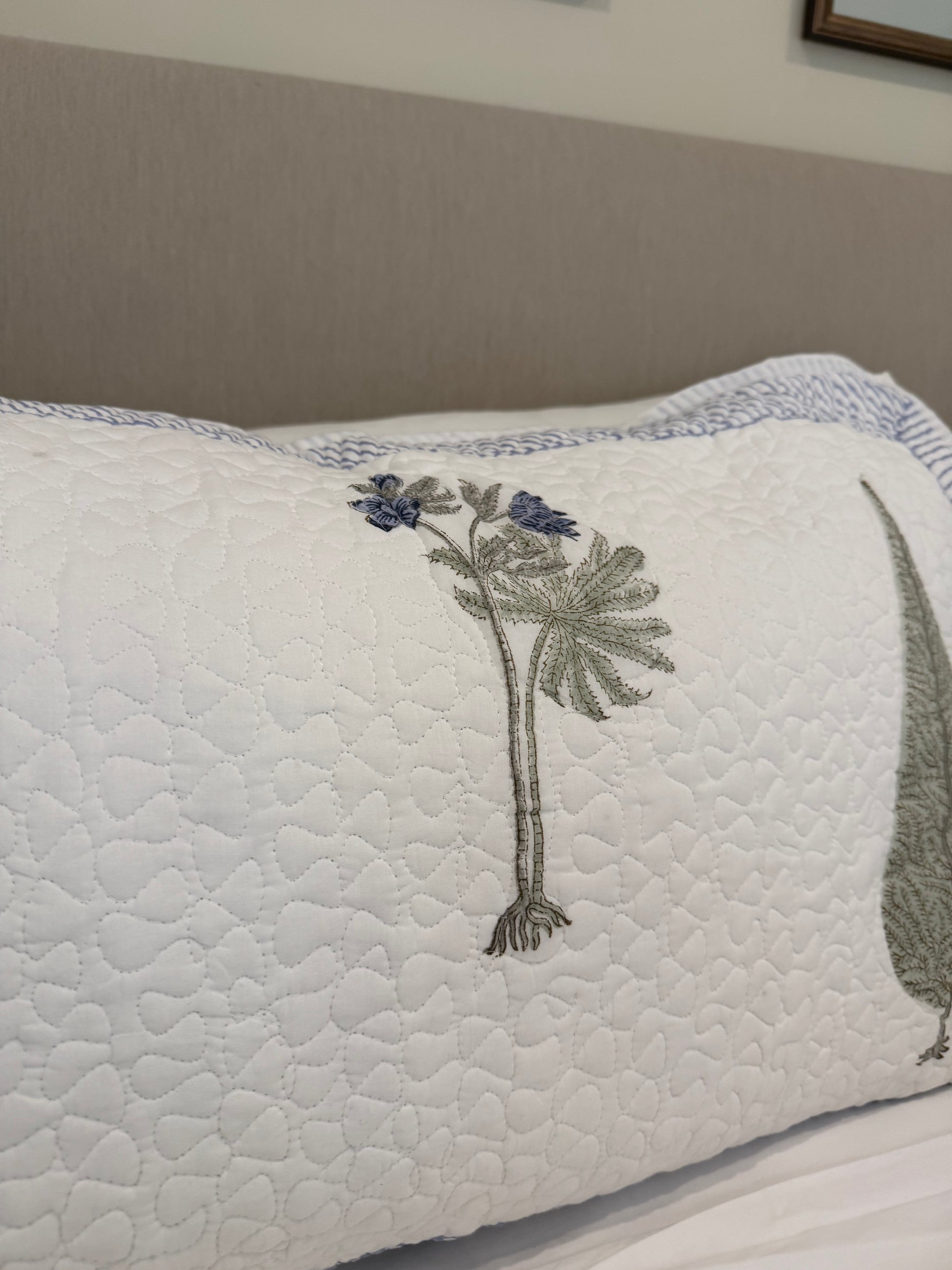 Cypress and Foliage Quilted Hand Block Printed Pillowcase Pair