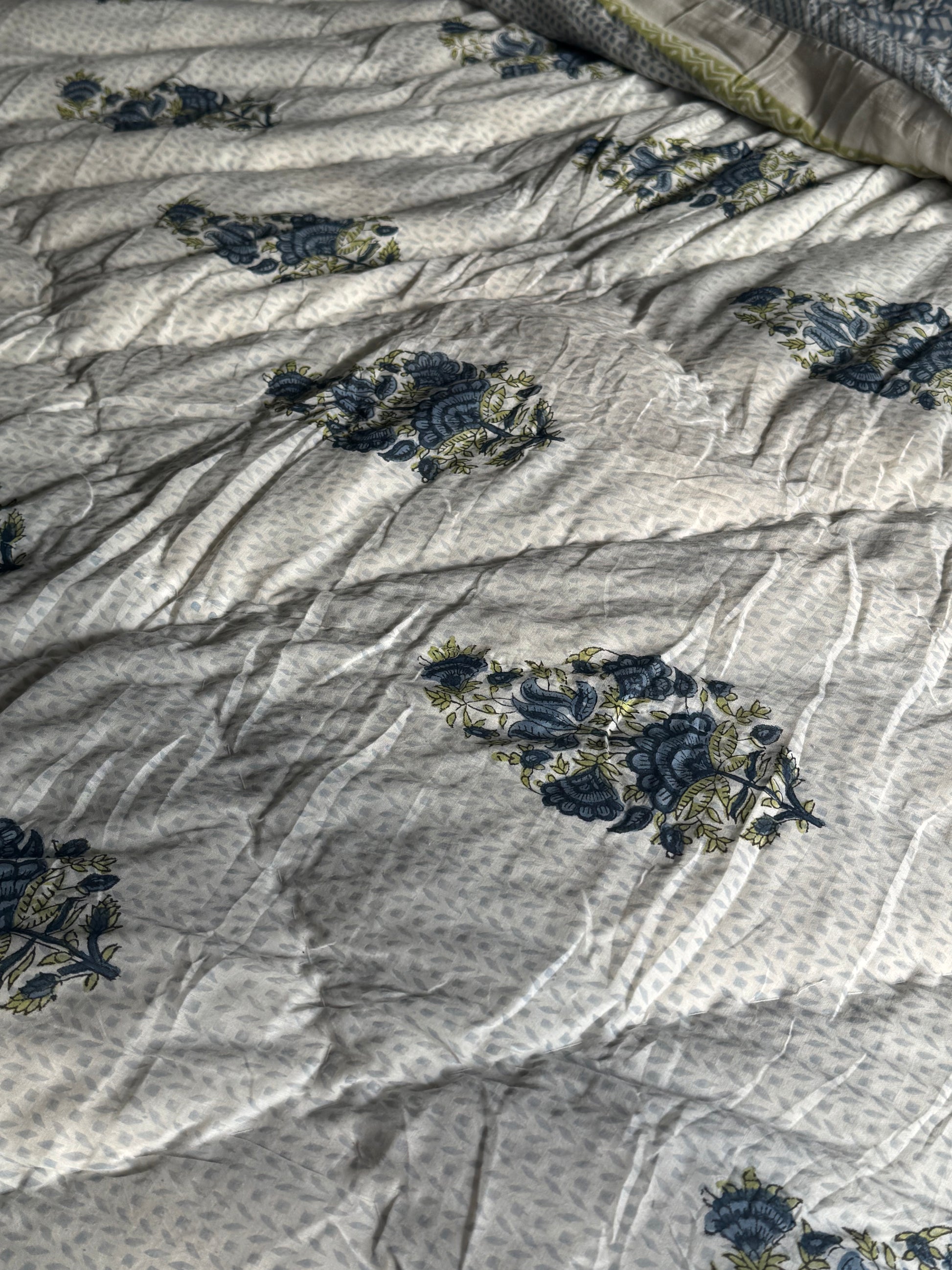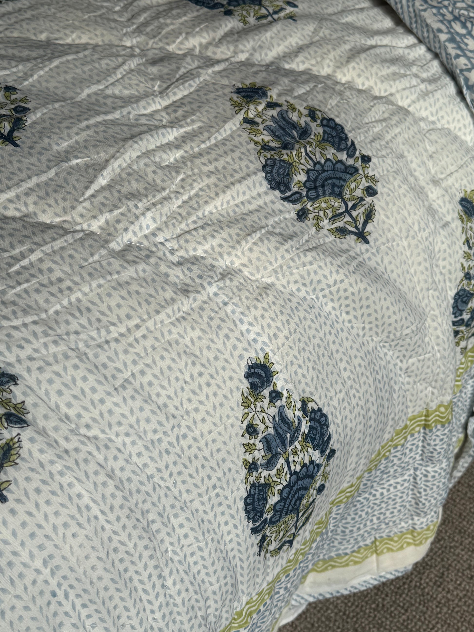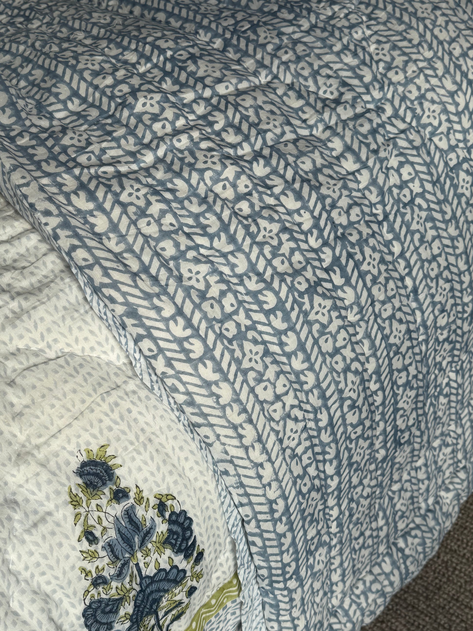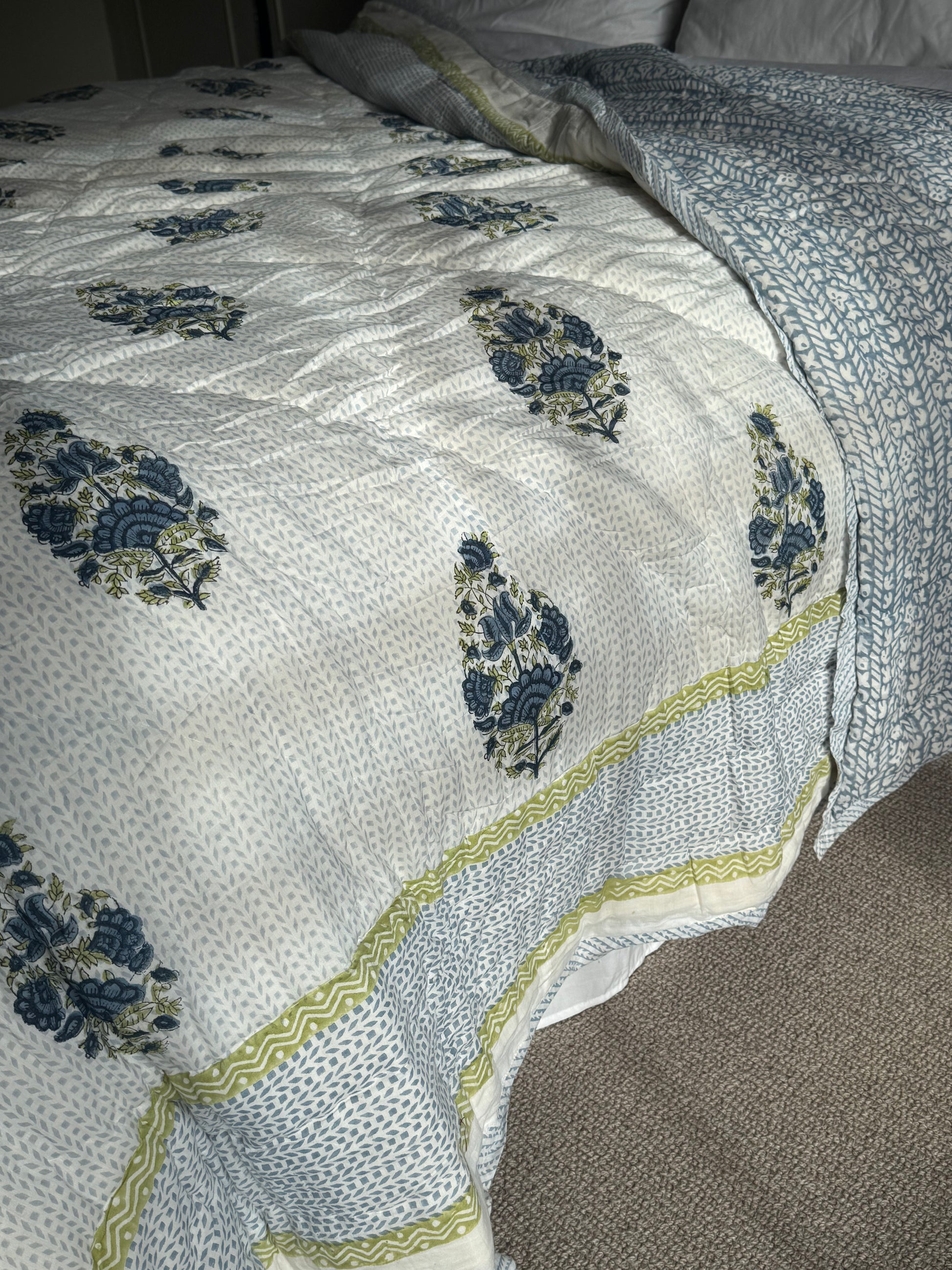 Handmade in Jodhpur, our our bedspreads feature intricate handblock printing on 100% Cotton and are lightly quilted to make appropriate all year round.
