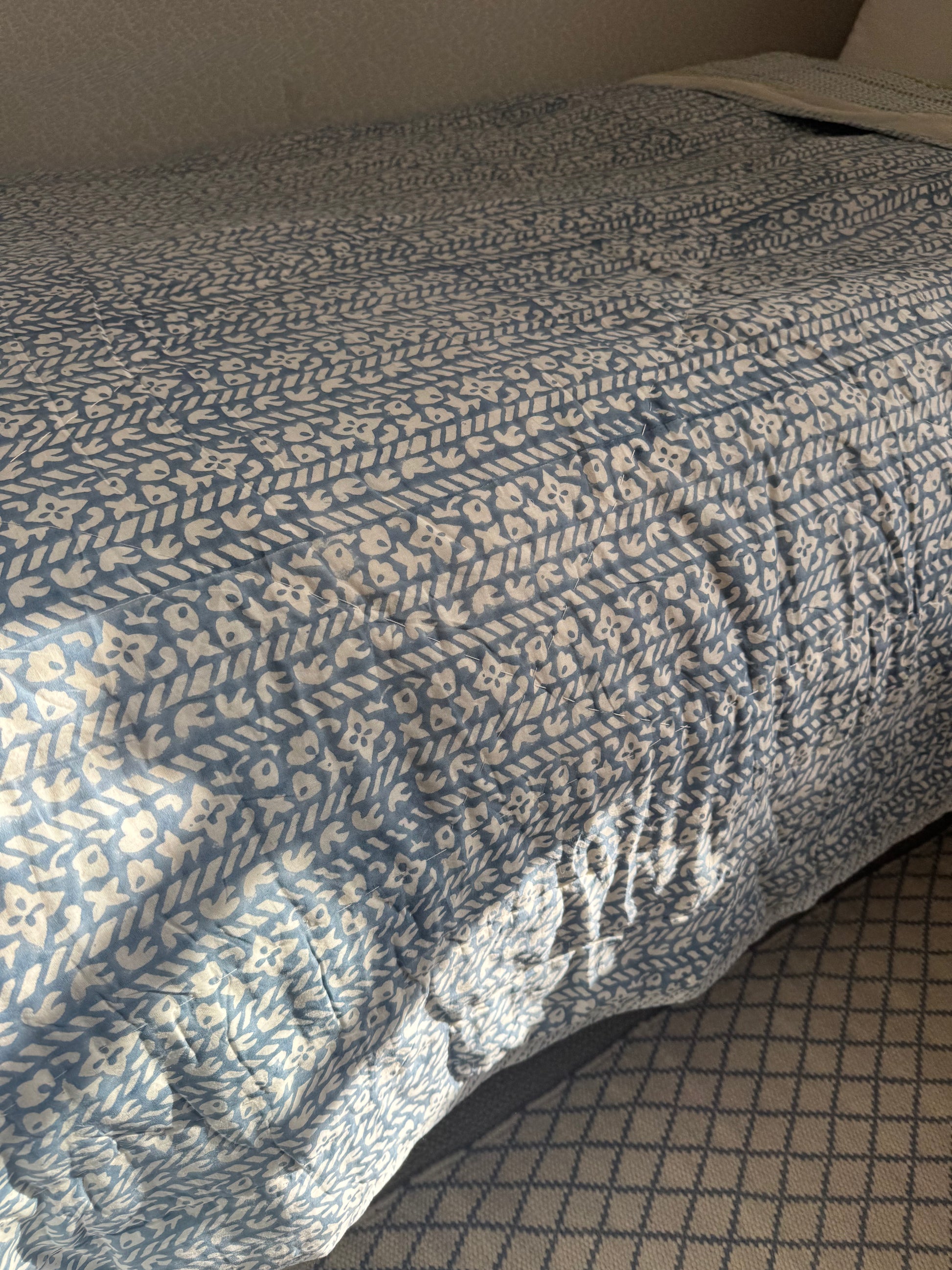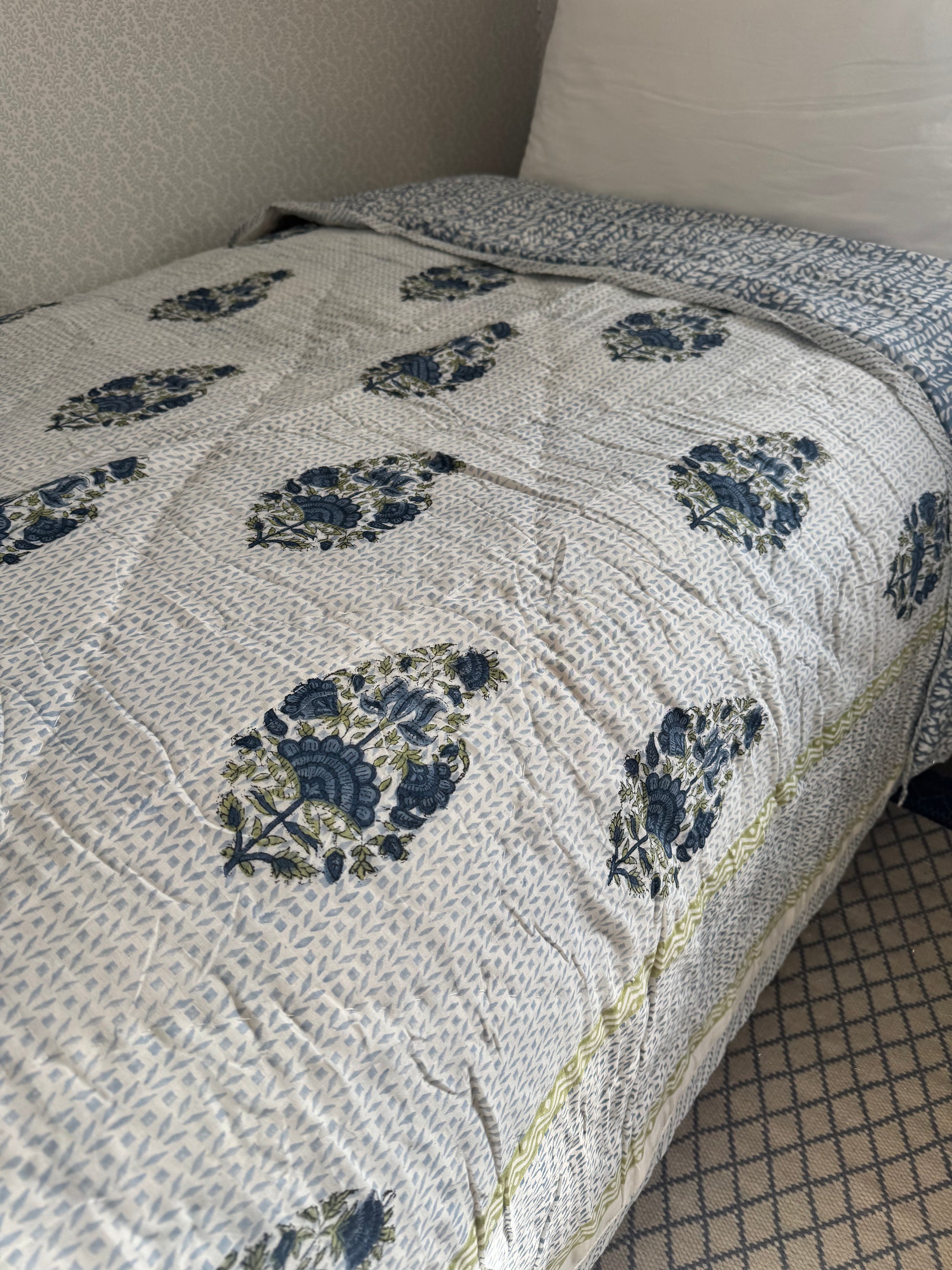 Handmade in Jodhpur, our our bedspreads feature intricate handblock printing on 100% Cotton and are lightly quilted to make appropriate all year round.