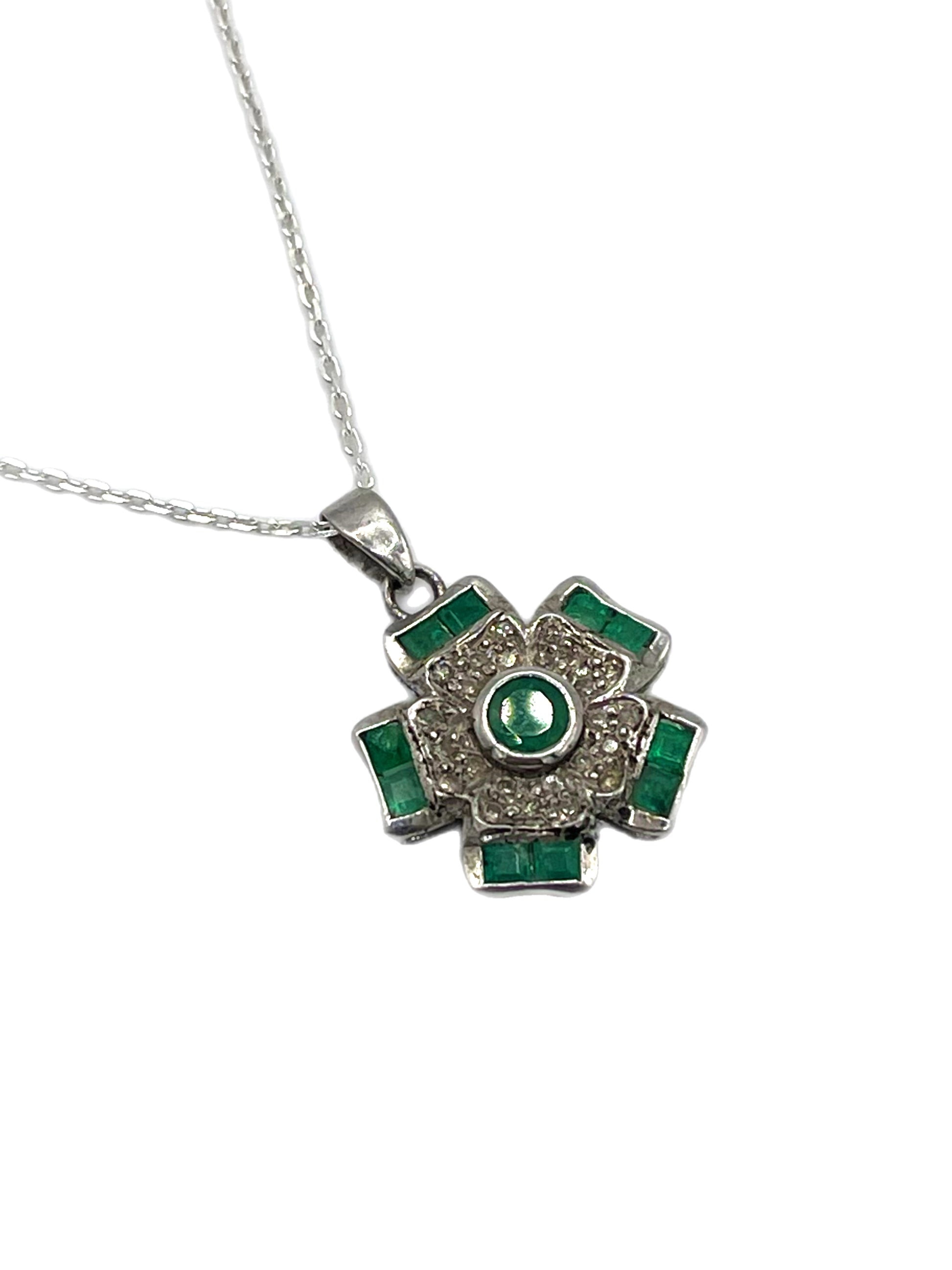 Crafted with Bright Emerald's and Lively Diamonds set in 925 Silver.