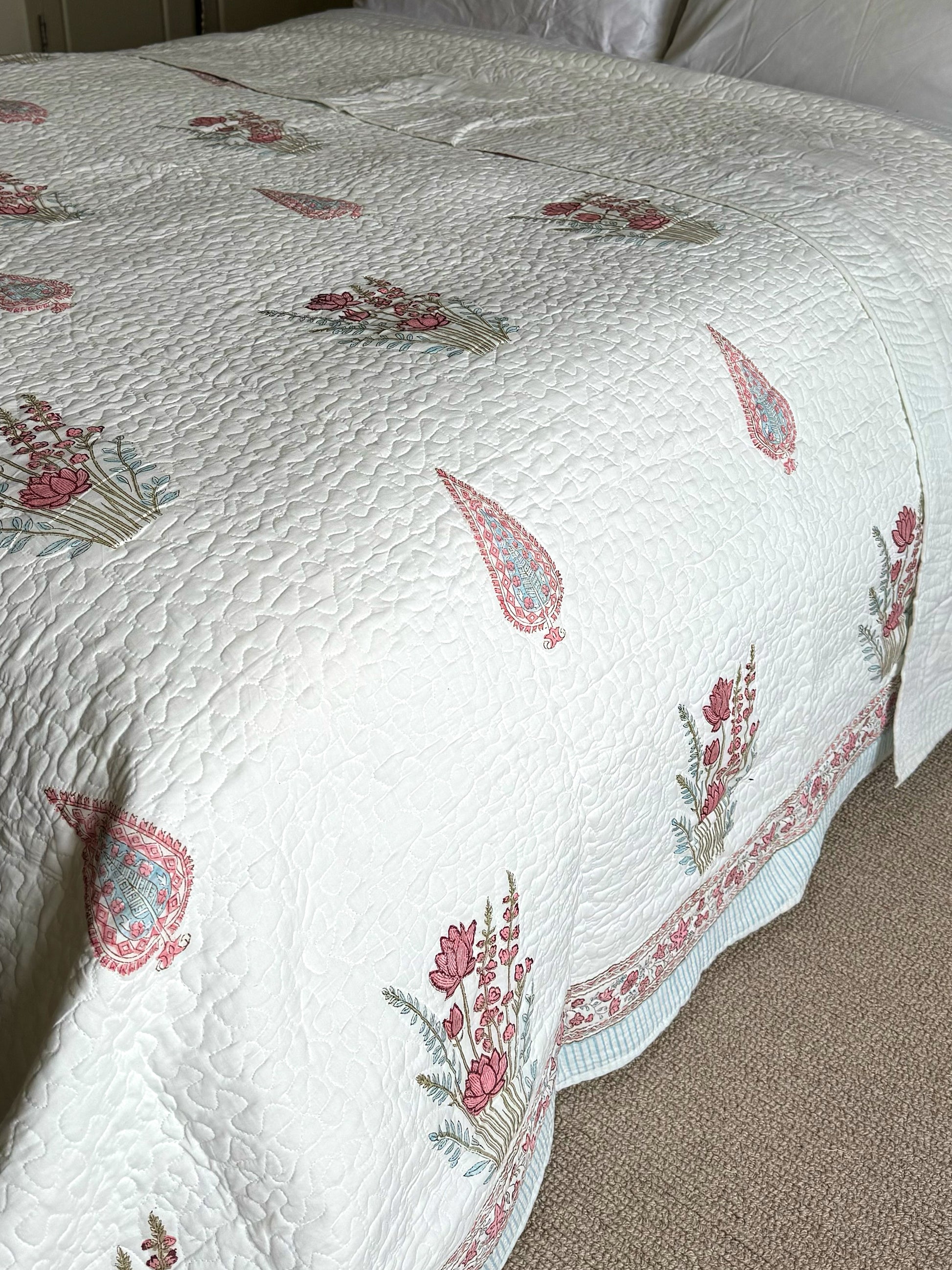 Handmade in Jodhpur, our our bedspreads feature intricate handblock printing on 100% Cotton and are lightly quilted to make appropriate all year round.