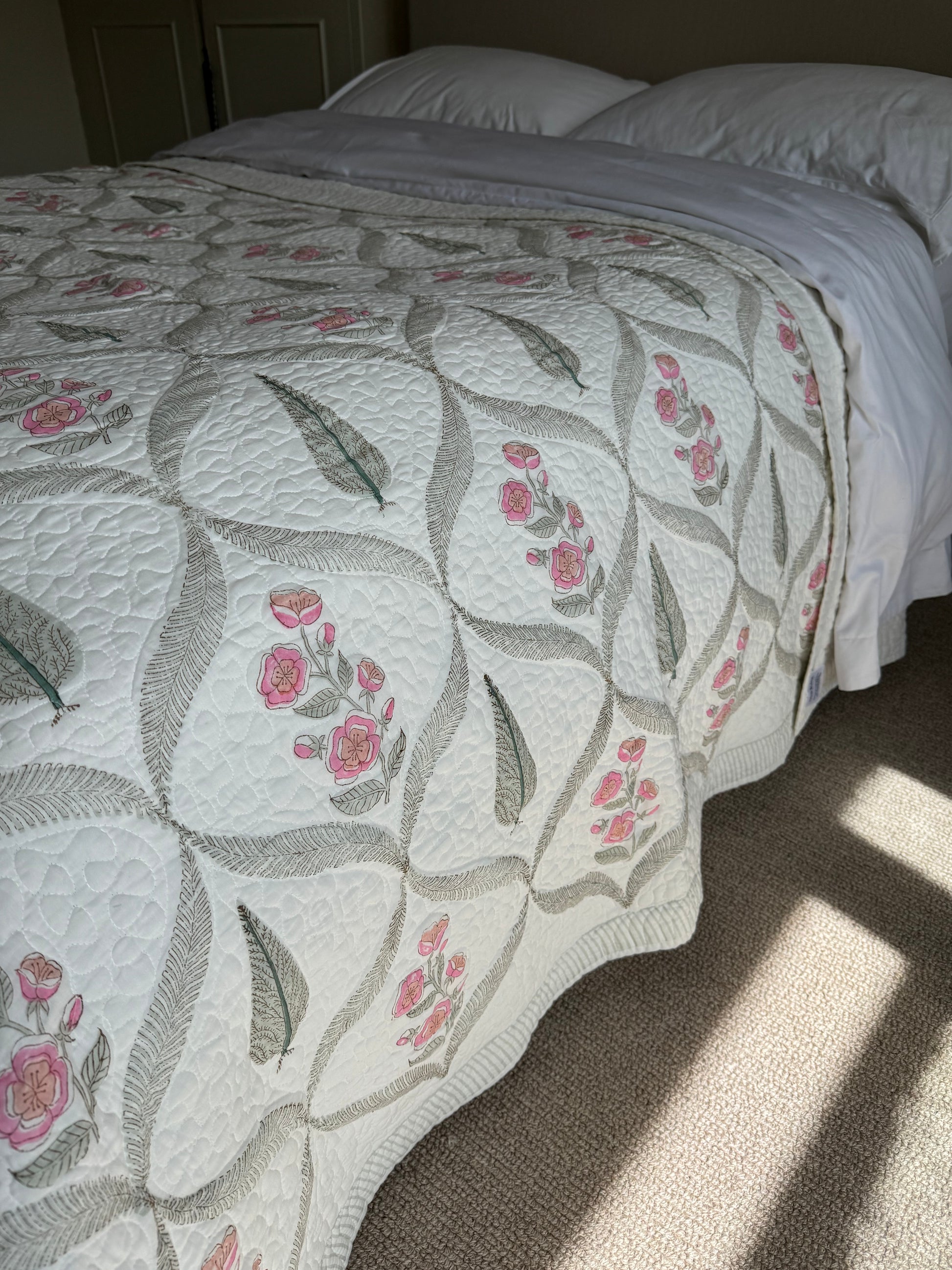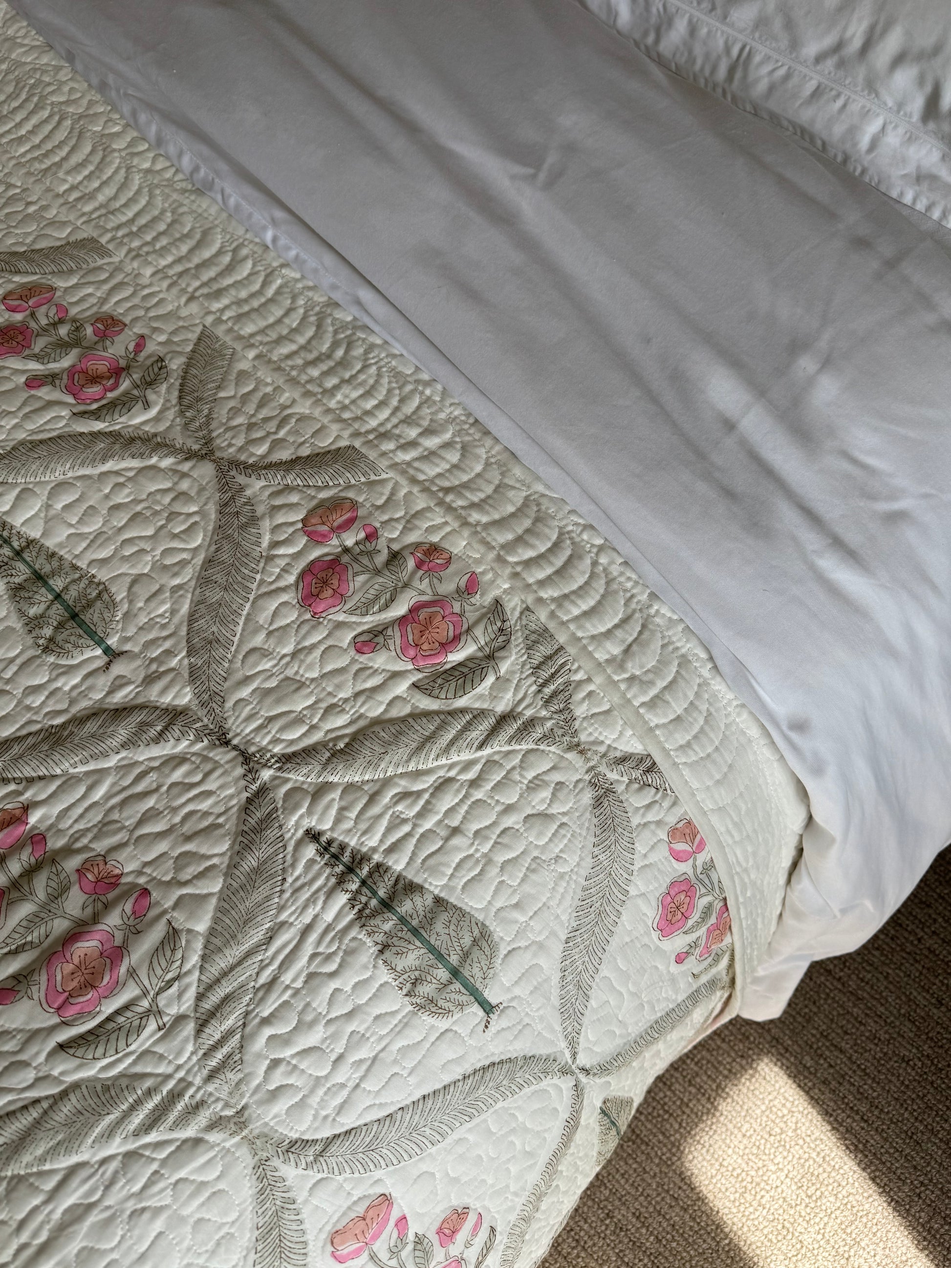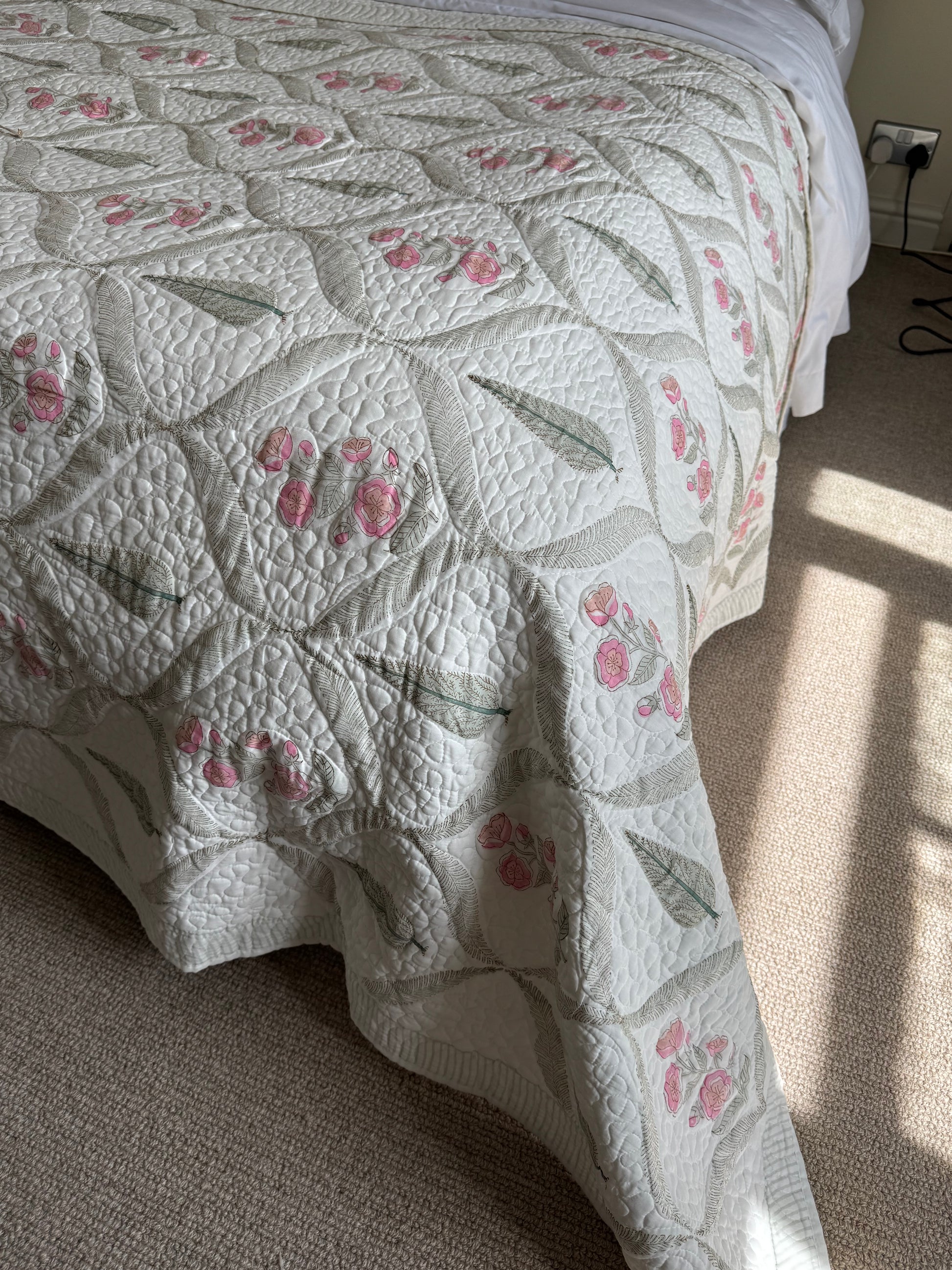 Cypress & Pink Foliage Hand Block-Printed Bedspread