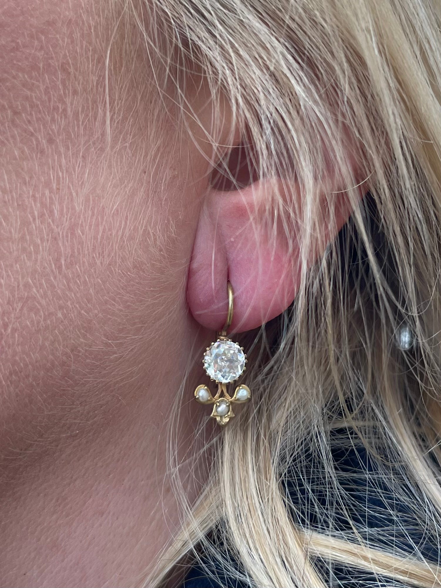 Pearl and Cz Drop Earrings
