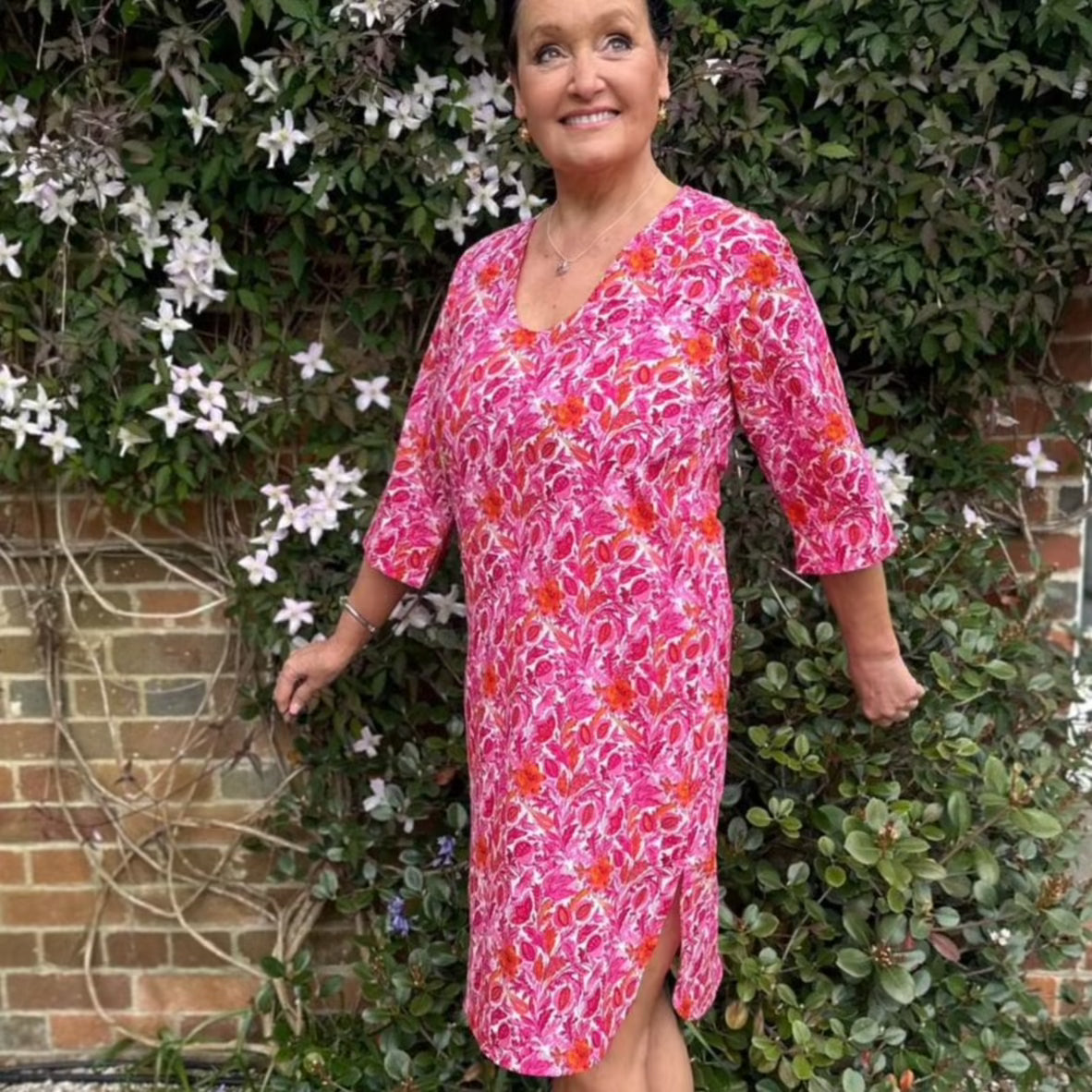 Designed with a ultra flattering scooped neck, and a curved hem.