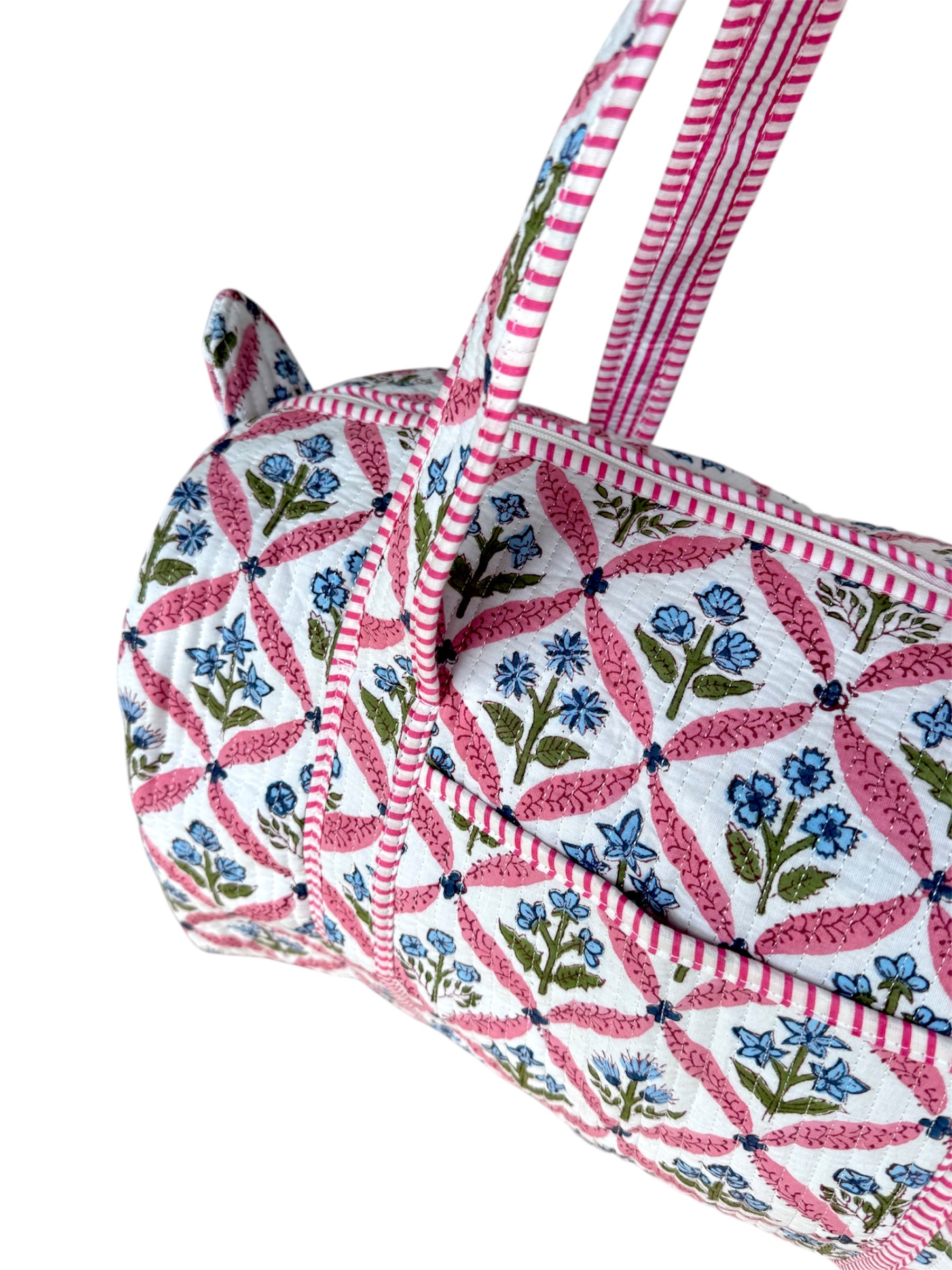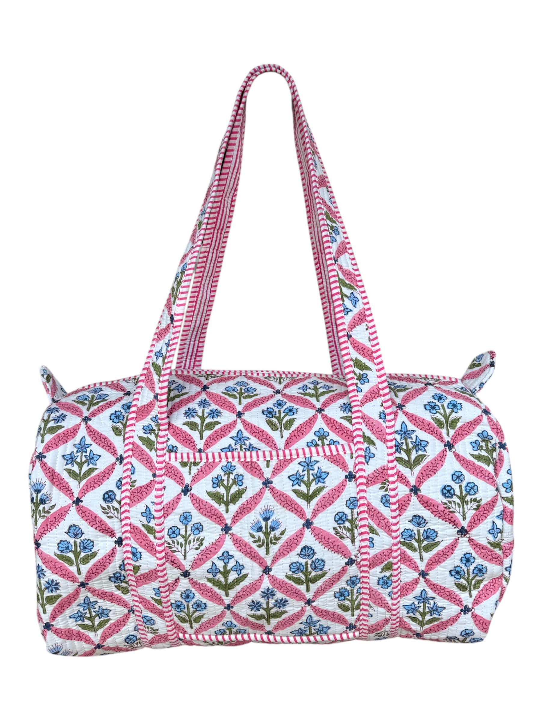 'Pink Trellis' Block Print Overnight Bag