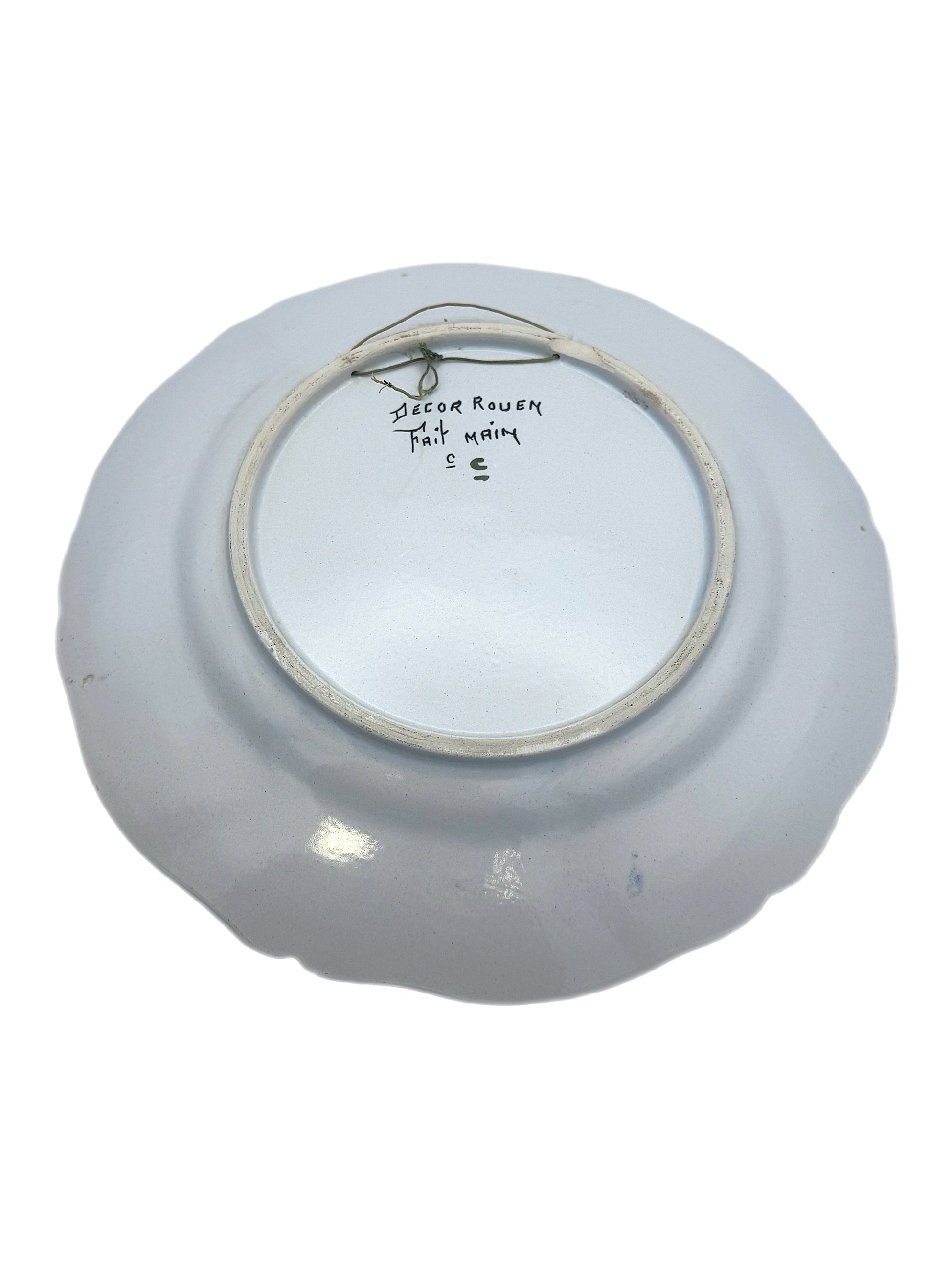 Hand Painted Rouen Plates depicting a Chinese influenced Pavilion
