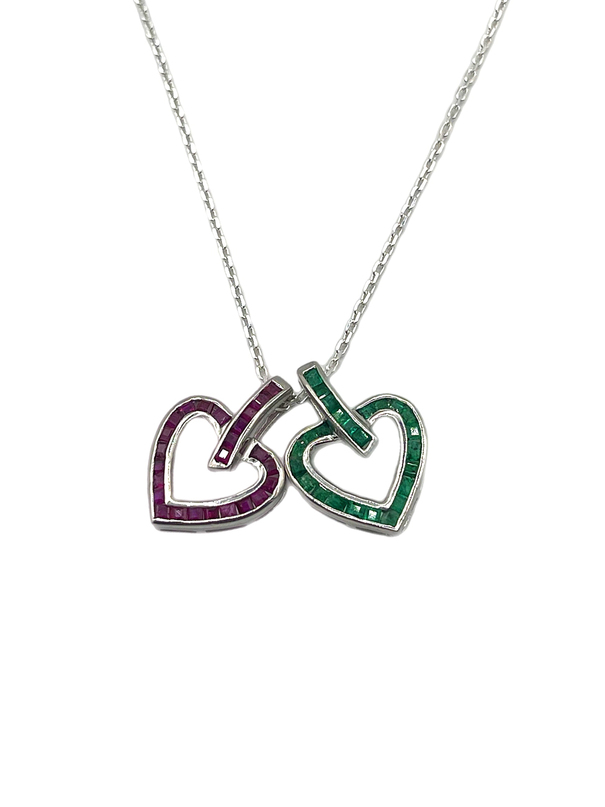 Personally, I love wearing the Emerald and Ruby Hearts together.