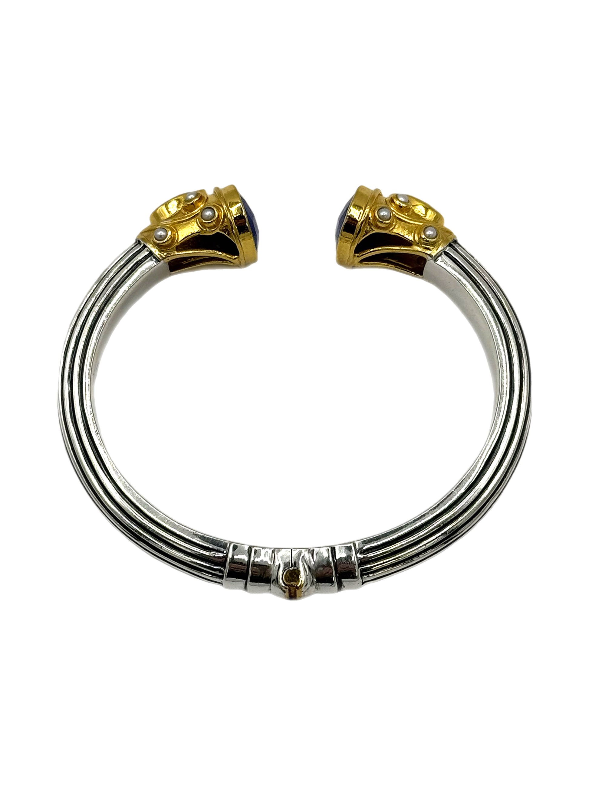 Silver & Gold Plated Lapis Lazuli, Pearl and Turquoise Jewelled Bangle