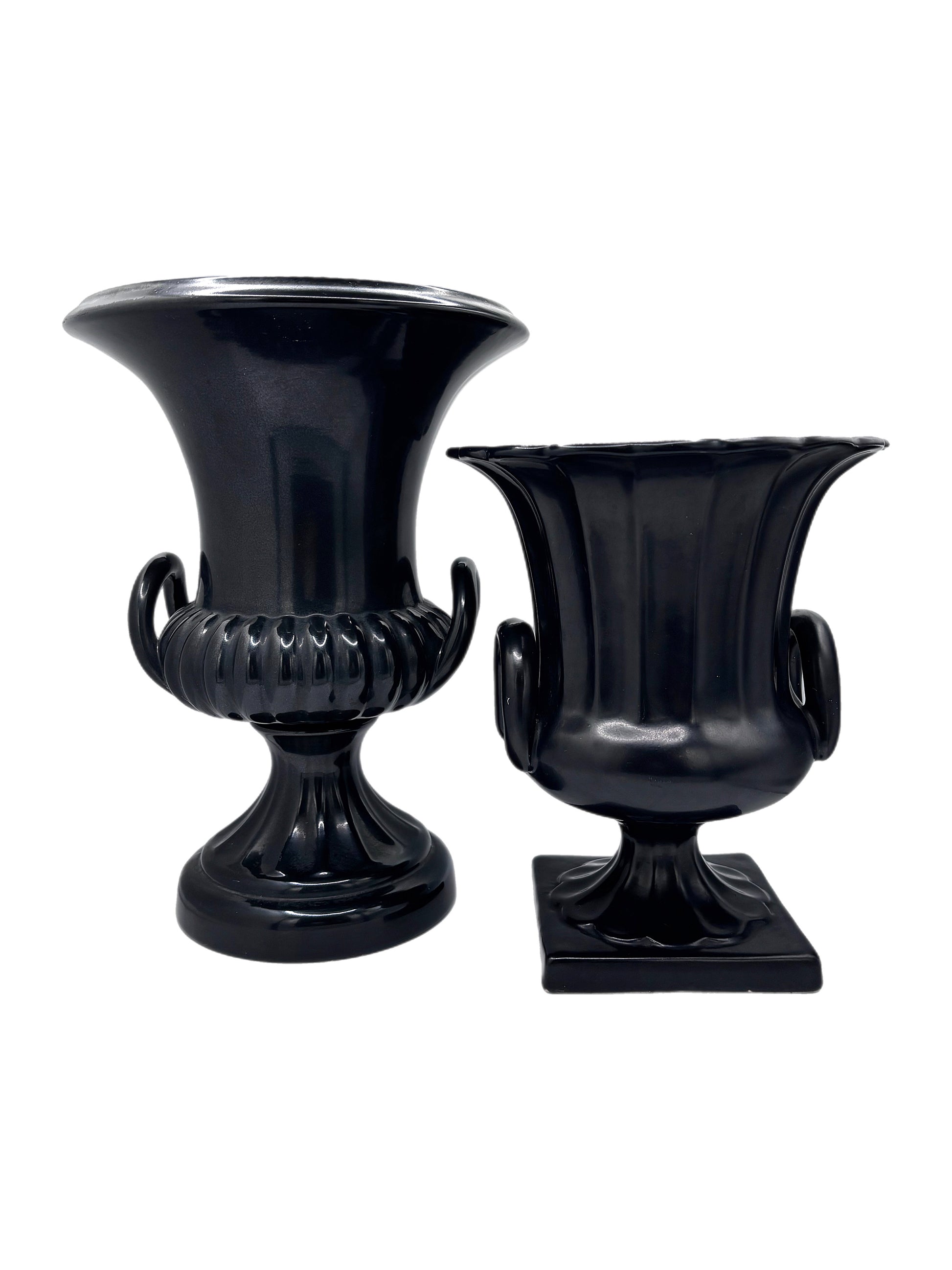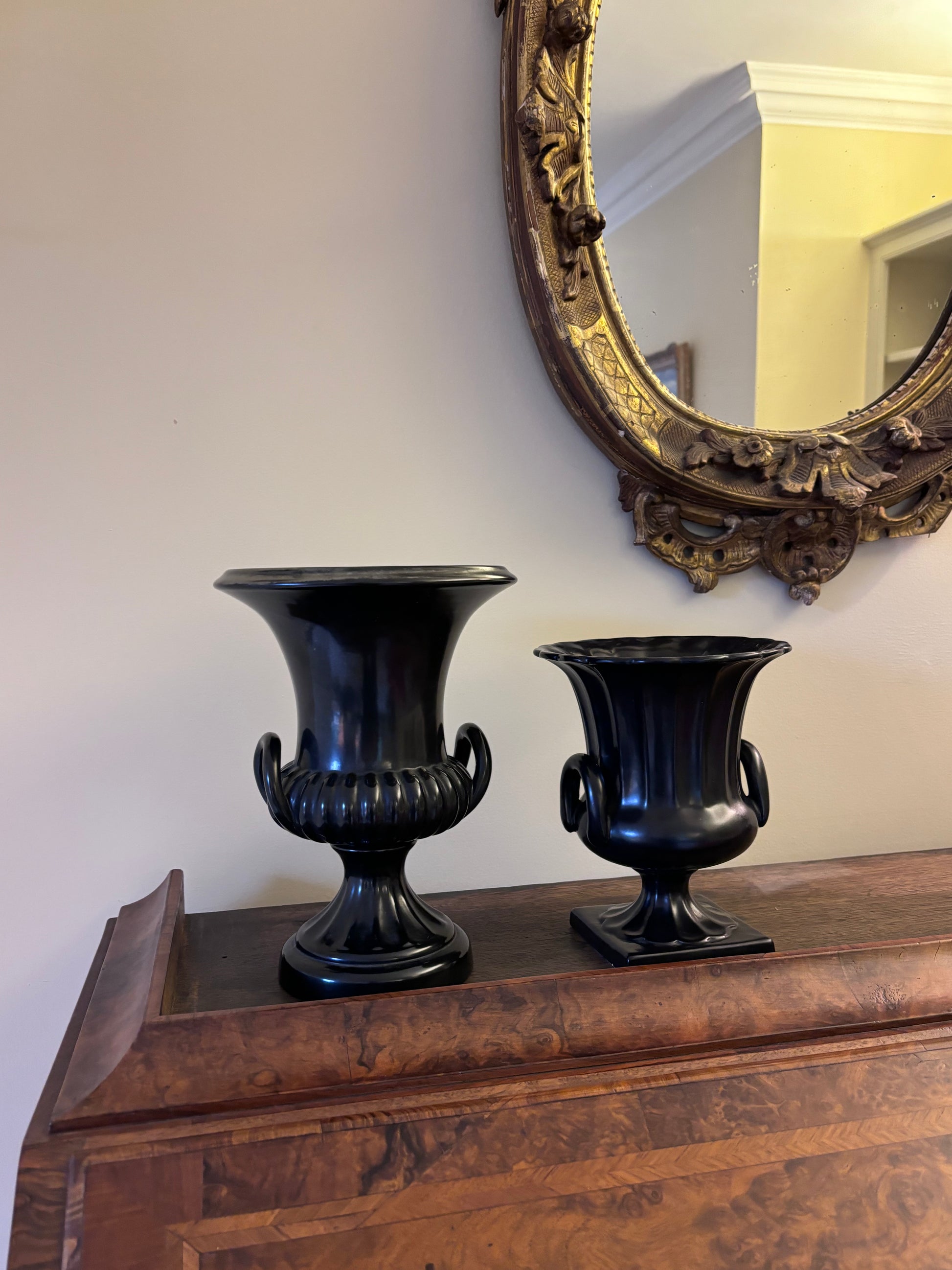 Wear shown on inside of the urns but not visible when flowers are in. (SLIGHT WEAR TO PATINA)